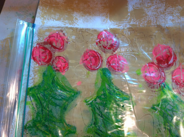 | Position baggie over paper and press. I did a hot pink layer the second time. |